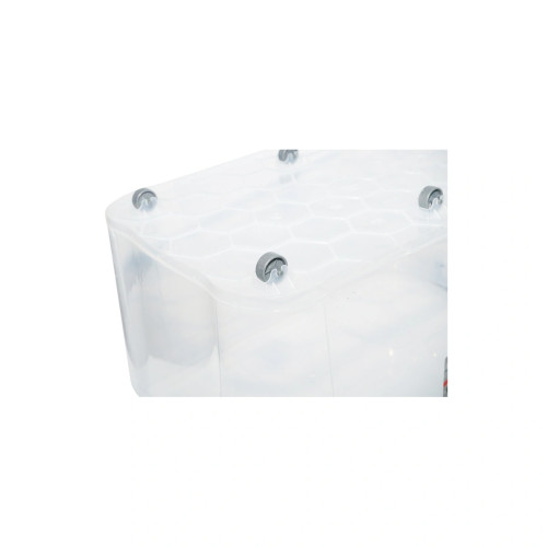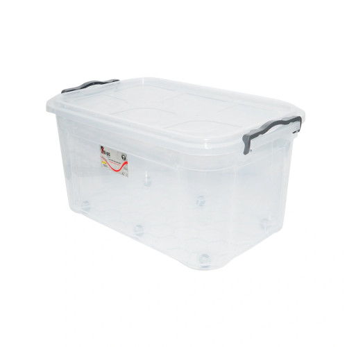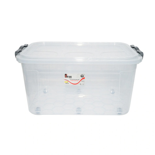 Cutie depozitare 50L cu capac si roti din plastic transparenta Cod:DISLK04 Dimensiuni -400 x 630 x 320 mm Volum- 50 L Culoare- Transparent Pret pe bucata.