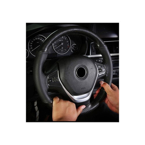 Husa volan cu ac si ata din piele cu gaurele marime M, culoare negru+carbon si cusatura gri PREMIUM Cod: LUXFST02 Husa este realizata din piele dintr-o singura bucata. Marime: M Culoare: negru+carbon si cusatura gri Pret pe bucata.